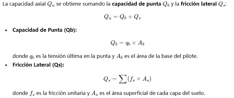 · Efecto de grupo: la interacción entre pilotes adyacentes reduce la capacidad efectiva; se usa un factor de eficiencia de grupo.